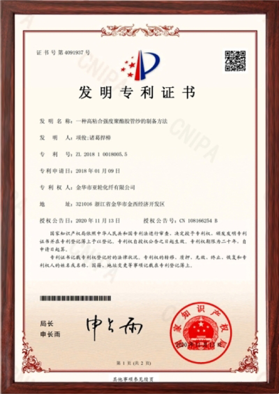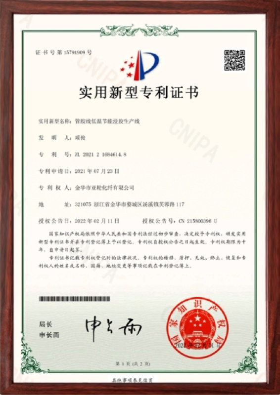 金华市亚轮化纤有限公司成立于1997年。是一家集科研、设计、生产的橡胶骨架材料专业厂家,是产品国家标准的制定者。公司坚持以“创新实现价值,专业造就品牌”的理念,主要产品有用于高、低压橡胶管、汽车刹车管、汽车空调管的涤纶浸胶管线、涤纶定型线、轮胎用尼龙和芳纶单根帘线。目前本厂产品已覆盖全国省市并远销欧美、东南亚等,深受广大用户的青睐和信赖。